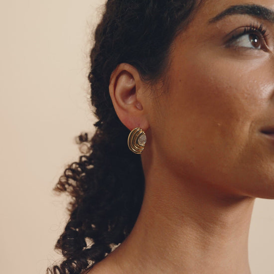 Indulge in the decadent sweetness of these Kouign Amann-inspired stud earrings. Adorned with sparkling CZ stones, they are a sophisticated nod to the French patisserie's indulgent flavors. A tasteful and exclusive addition to your jewelry collection.