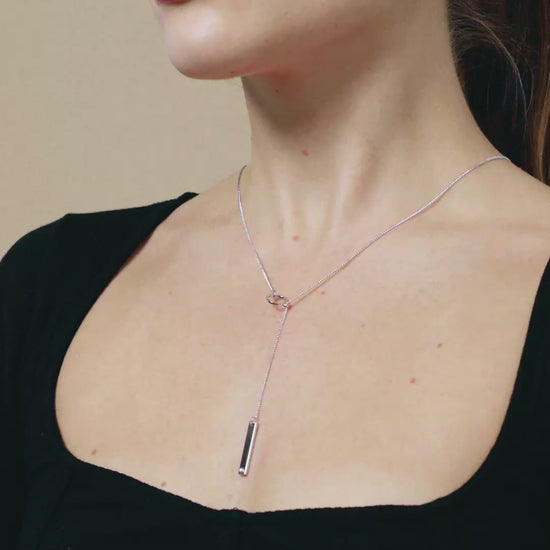 Get ready to turn heads when you're wearing this lariat bar drop necklace! The chic bar charm is studded with a single dainty CZ stone, adding the perfect amount of shine.