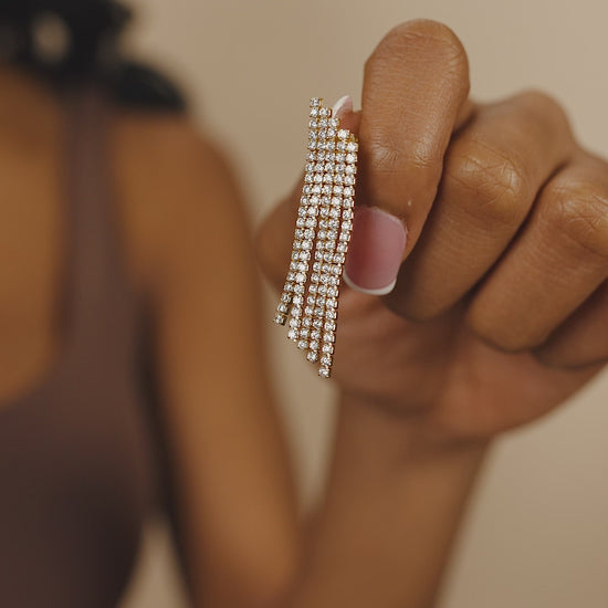 Indulge in luxury with our Linda CZ Dangle Stud Earrings. Adorned with CZ parallel rows, these earrings feature three layers that create a mesmerizing effect. The dangle design adds elegance and sophistication to any outfit. Elevate your style with these exclusive, handcrafted earrings.