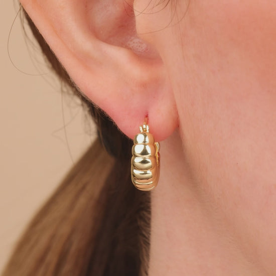 Sculptural and standout, these puffed hoops deliver just the right amount of bold. With a graduated, ridged texture, they add depth and polish to any stack—perfect with a slicked bun or oversized blazer.