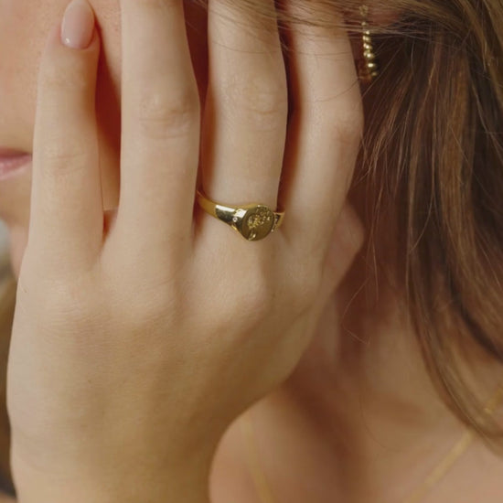 This signet ring is the perfect way to make your wishes come true! It features a charming, engraved dandelion to remind you to trust yourself and your dreams. Its delicate style adds just the right touch of sophistication, so you can show off how awesome you are with a subtle yet stylish flair. Wish away!