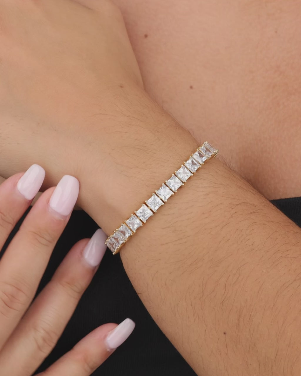 Stacked with shine and squared off for impact. This bracelet is your boldest plus-one—whether you’re headed to brunch or black-tie.