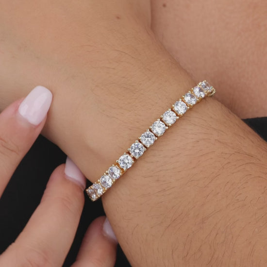 Round, radiant, and impossible to miss. This tennis bracelet brings all the sparkle—no styling required.