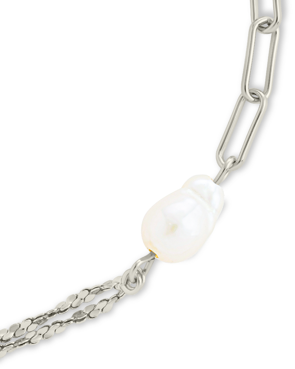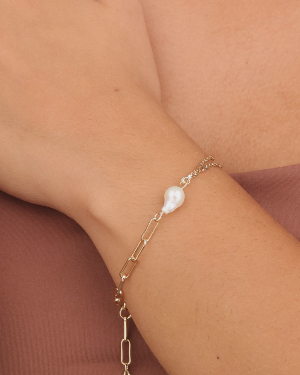 Half bold chain, half rope, one standout pearl. A little unexpected, a lot cool—wear it solo or mix it into your stack.
