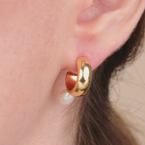 Classic, with a cool-girl edge. A luminous pearl drop meets sleek hoops in this minimalist update on a forever favorite. Wear them with a low bun and sharp tailoring for quiet drama.