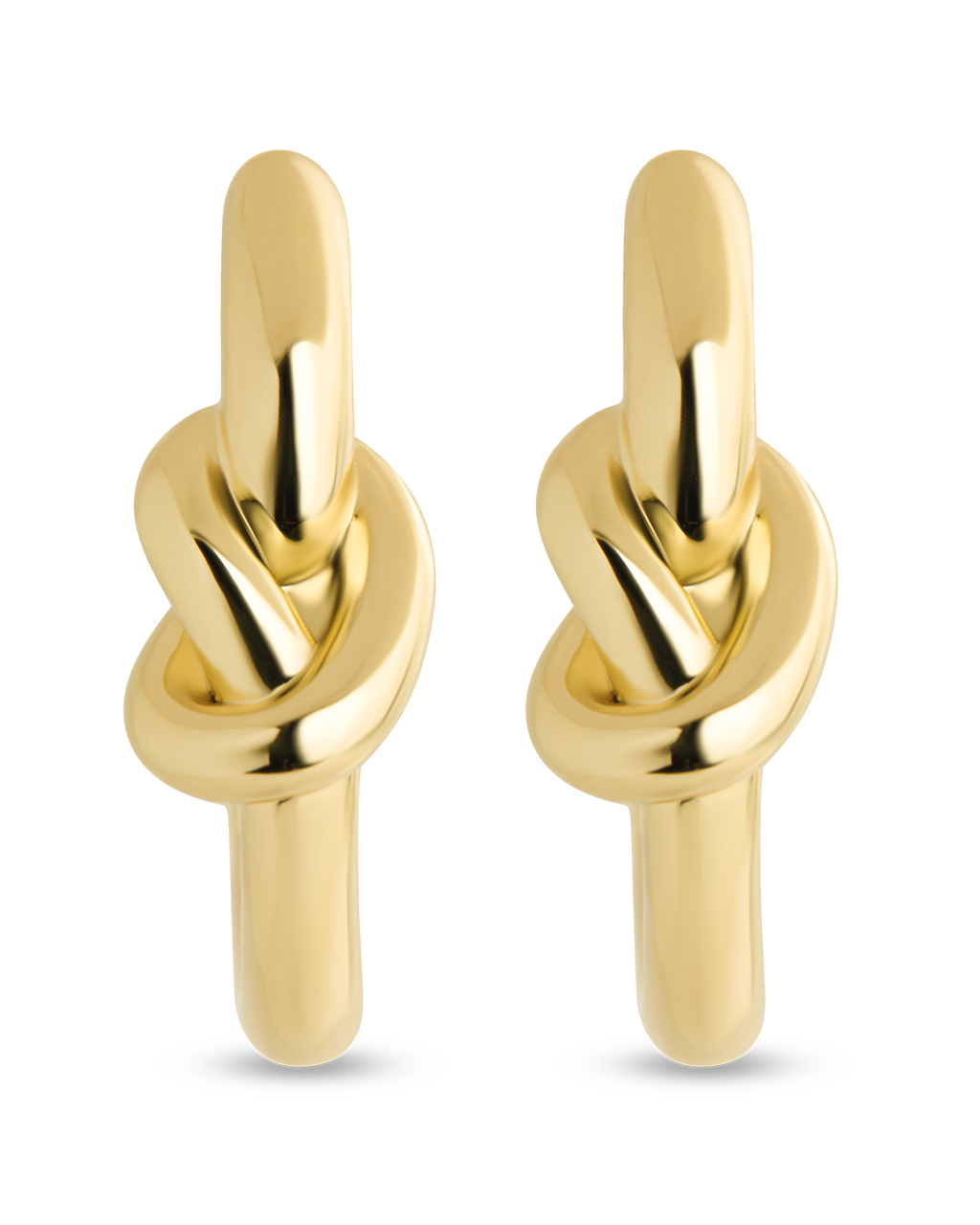These love knot huggies are a fresh spin on a timeless symbol. Bold yet refined, their polished curves make them an easy win for everyday wear. Stack them with mixed metals or style solo to let the sculptural silhouette stand out.