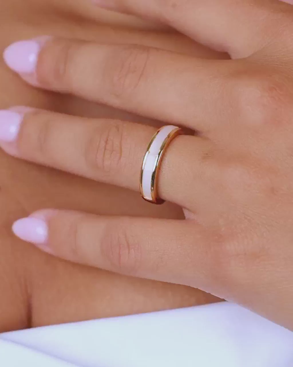 Accessorize with Mishel—the beach-chic stacker! This band ring comes with a stunningly smooth mother of pearl inlay that will turn heads and put your style on the map. Whether you’re a landlubber or a sailor, you’ll love Mishel’s shimmery vibes!