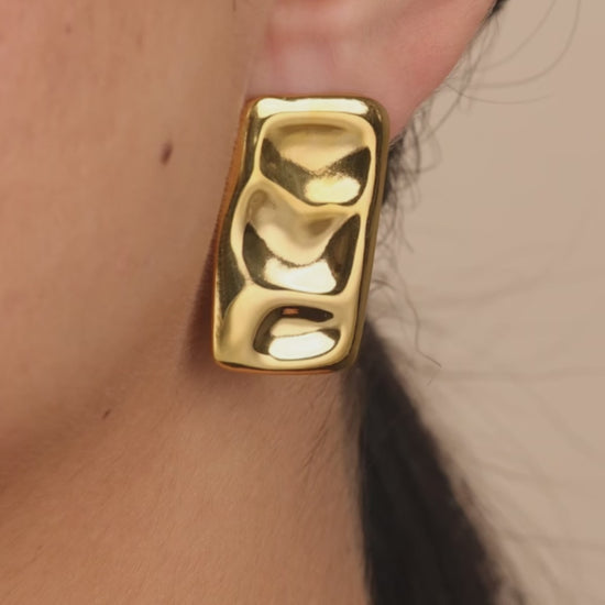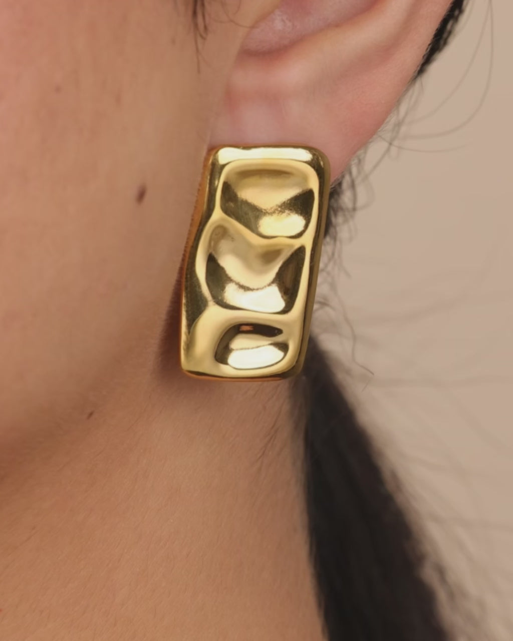 Sculptural and unapologetic. The Monet Molten Metal Bar Studs are fluid forms with a bold edge—like wearable art. Let them anchor a minimal look or play up their shine with layered chains.