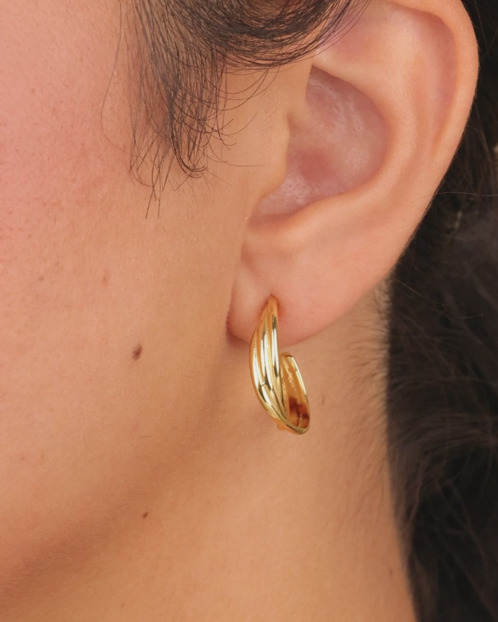 A sculptural twist on a classic. These fluid hoops play with movement and shine, making them the go-to for stacking with dainty studs or wearing solo for a clean, modern look.