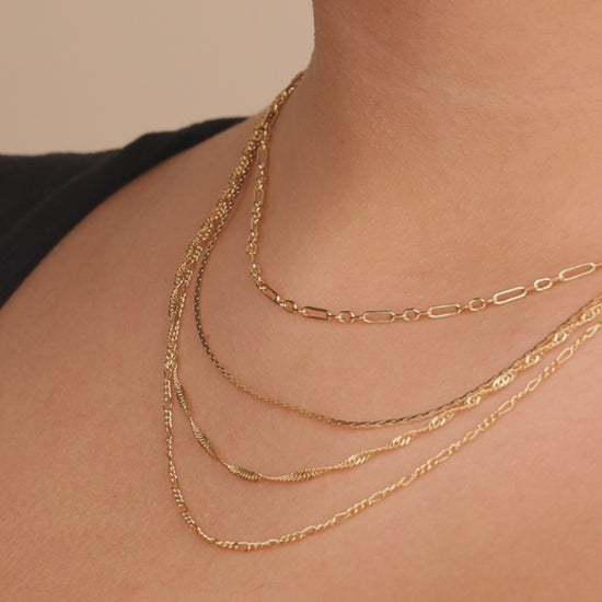 This necklace does the styling for you, with four distinct chains in varied textures and lengths. It gives the look of a layered stack—without the effort. Lightweight, easy to wear, and polished enough to pull any look together.