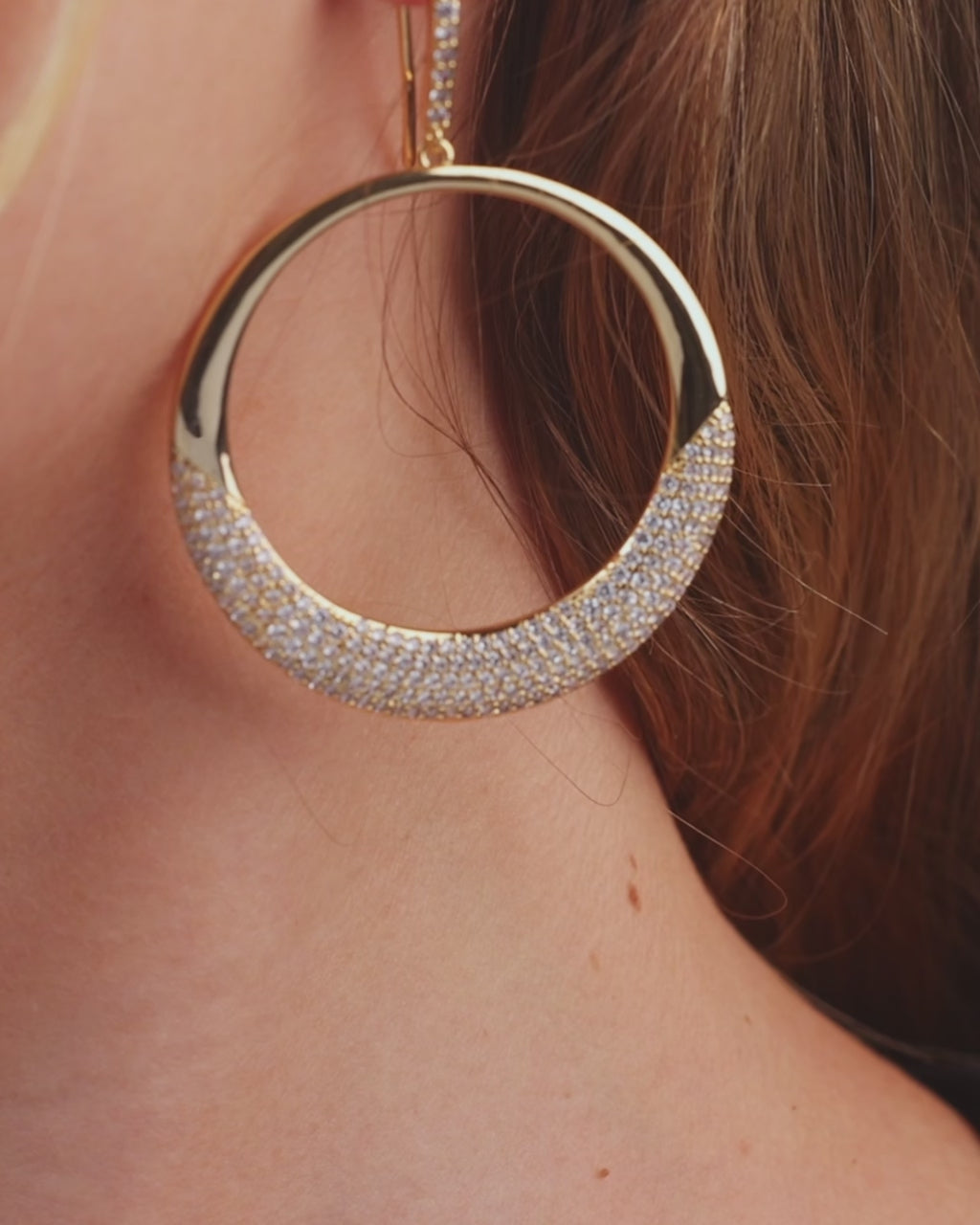 Drama, delivered. These oversized pavé hoops do the most—in the best way. Designed to turn heads and catch light from every angle. When minimal just won’t cut it.