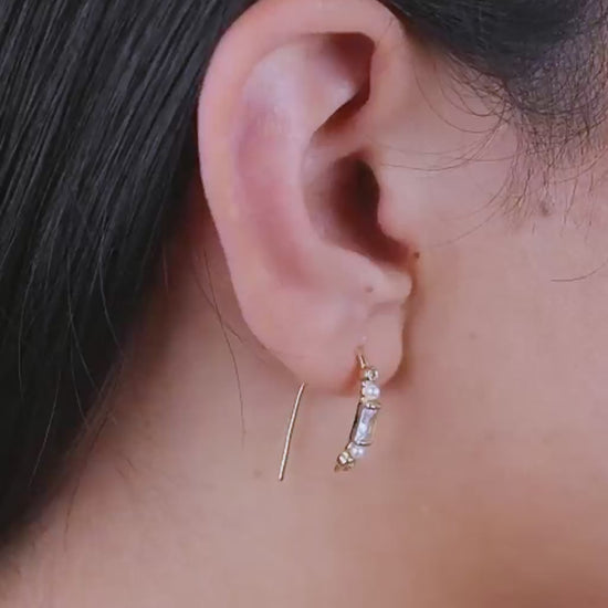 You'll look regal and radiant in these threader earrings! This striking pair is studded with pearls and CZ stones. Available in gold and silver tones.