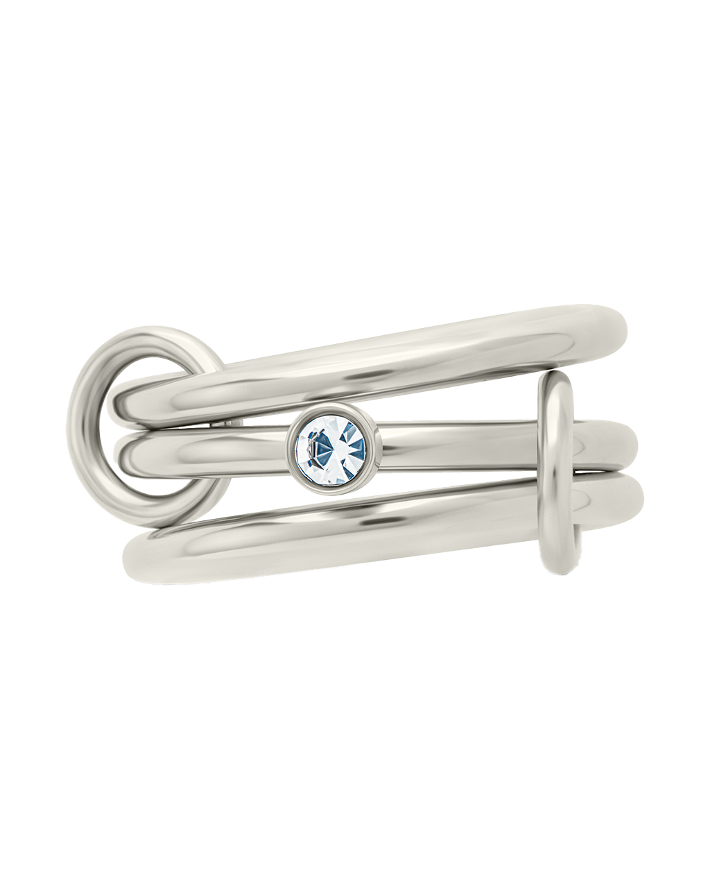Clean lines, sharp edge. This ring reimagines structure with three high-polish bands joined by a bezel-set CZ—bold yet refined, and made for stacking or solo impact.