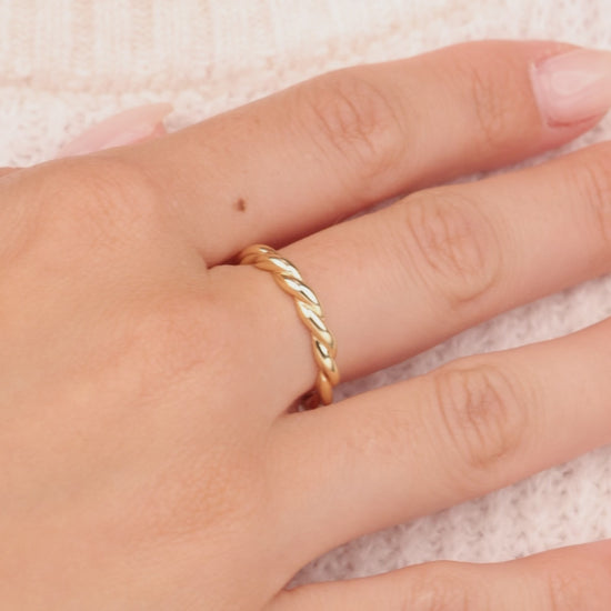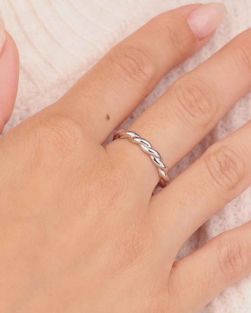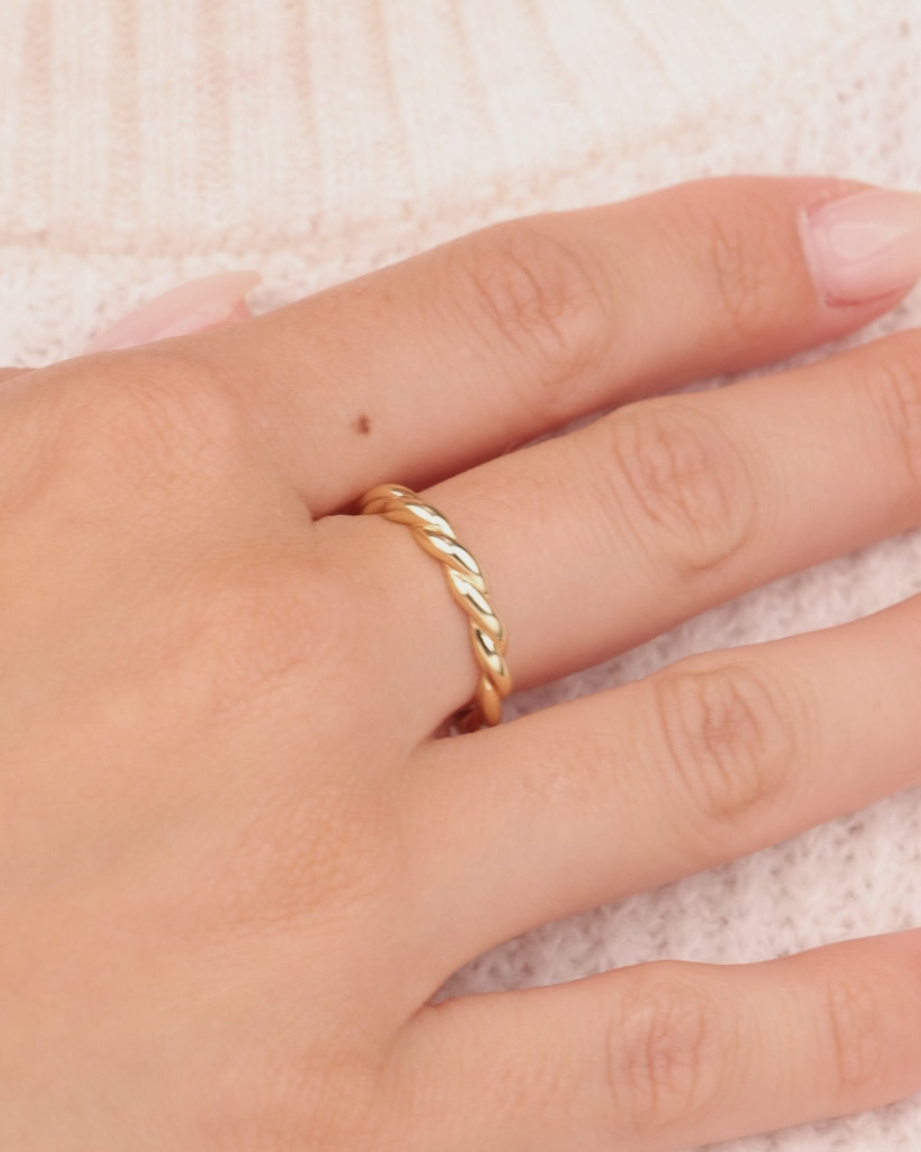 A subtle twist on a classic. The Nixie Band Ring blends smooth and textured finishes with an intertwining design that adds dimension to any stack. Delicate yet striking—wear it solo or layered for extra impact.