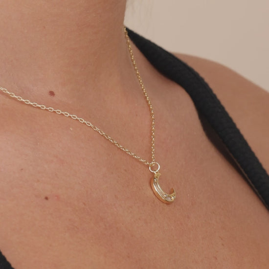 Strut your celestial style with the Nuria Pendant! Its striking crescent moon design, featuring sparkling CZ stones and an exquisite mother of pearl inlay, is sure to bring out your inner goddess. ☾