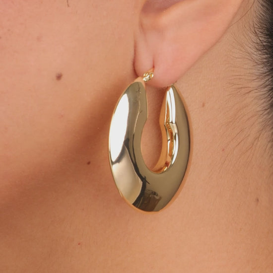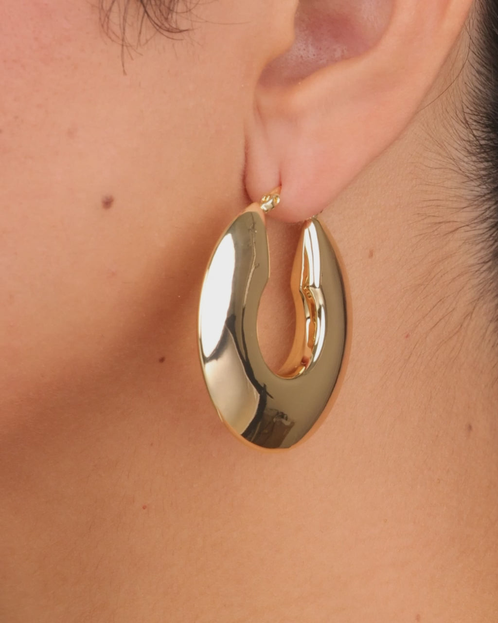Unapologetically bold. These oversized, sculptural hoops make a statement without saying a word. Polished to a mirror finish and curved just right, they're the kind of piece that transforms a look in one step.