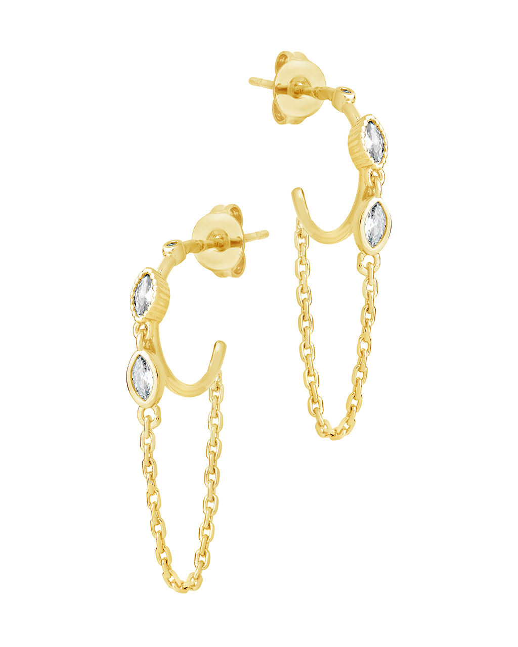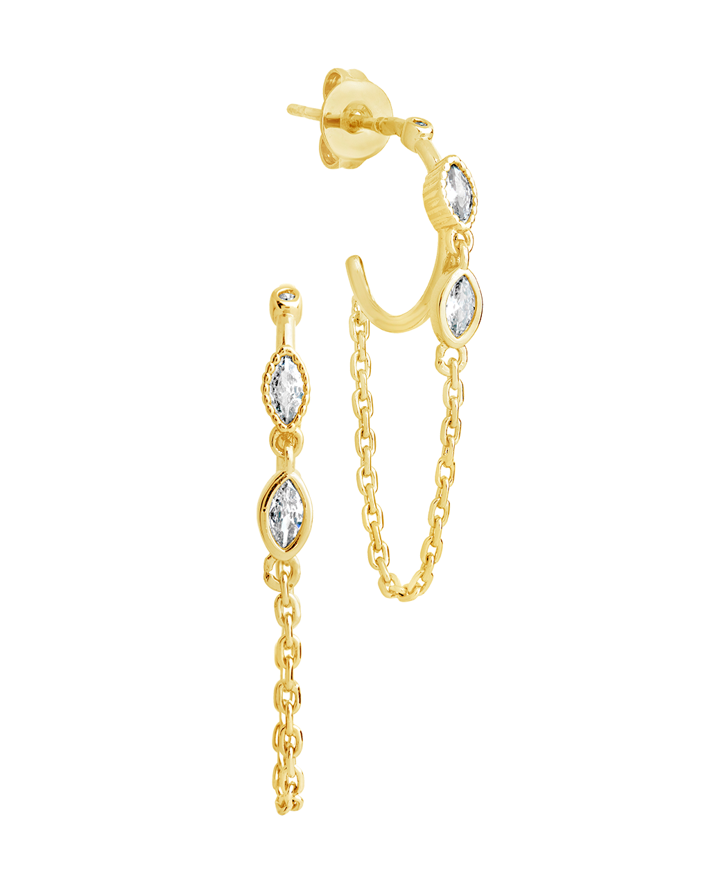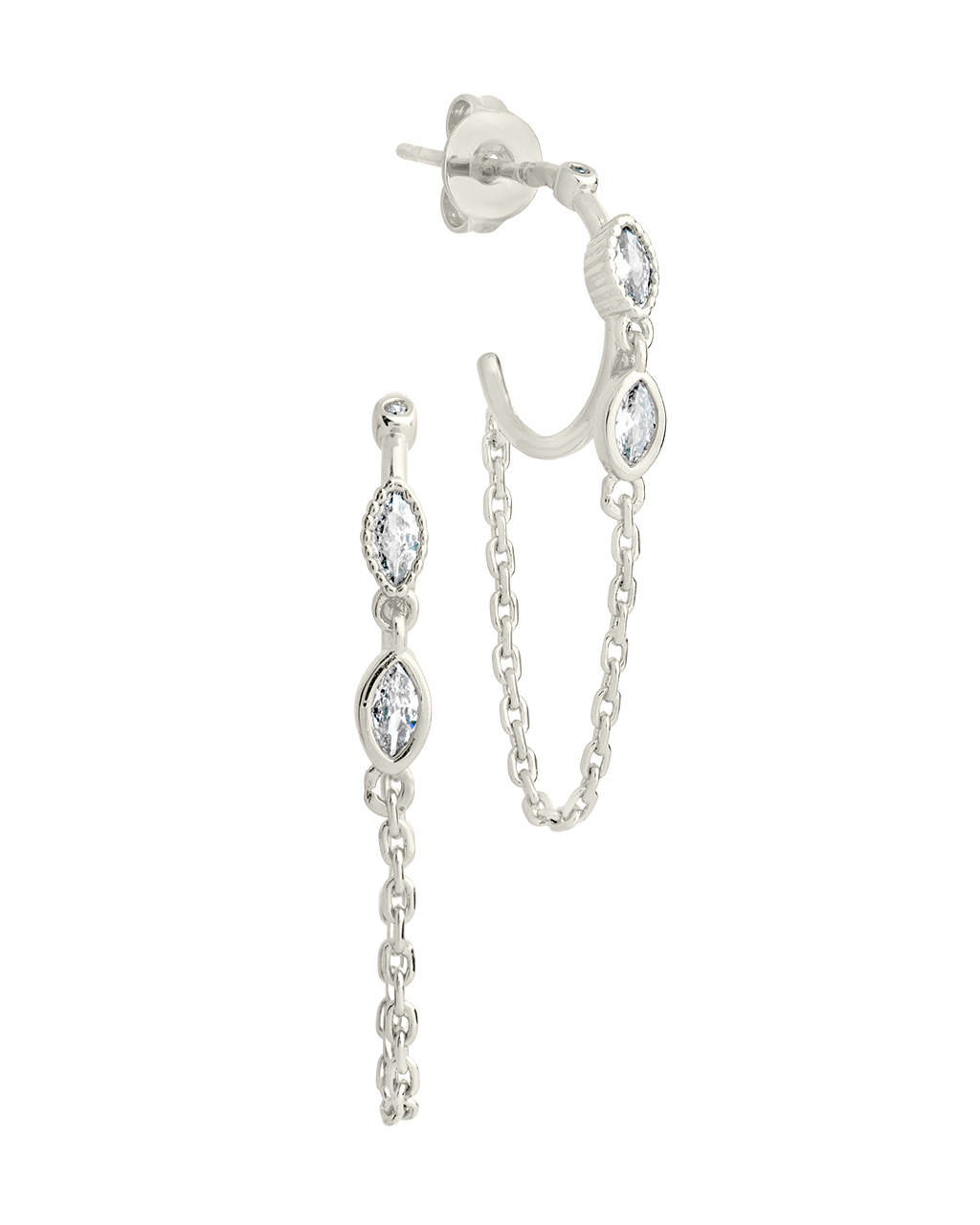 Delicate, with a twist. Featuring marquise stones and a draped chain, this piece adds movement and mood to any look.