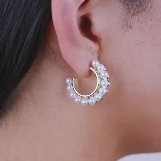 Features: 1" hoop, 0.25" width, 4mm pearls, Lead & Nickel free, post back
