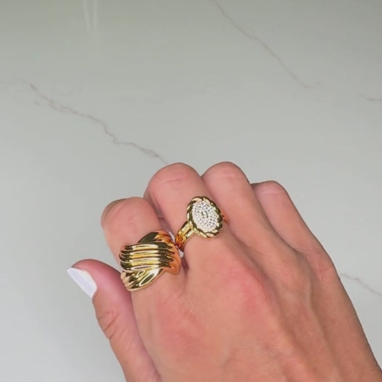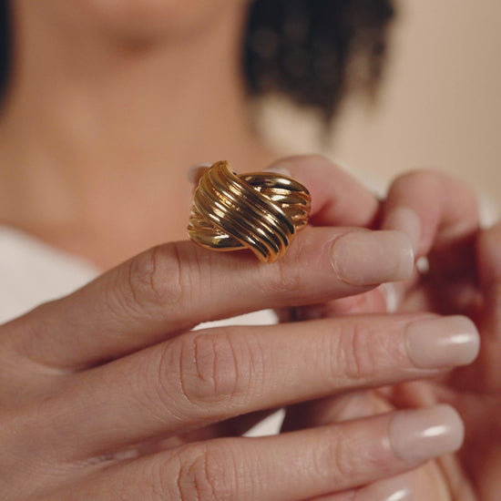 Elevate your style with the Plié Ring. This statement piece features a unique textured design that exudes sophistication and exclusivity. Perfect for those looking to make a bold fashion statement, this ring is sure to turn heads and add a touch of luxury to any outfit.