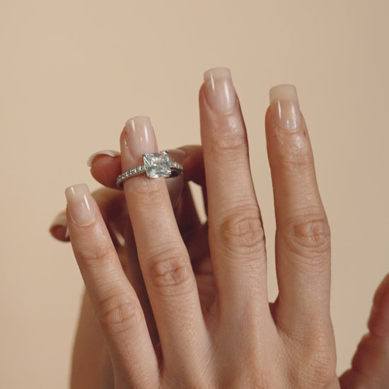 The perfect woman deserves the perfect ring, and we've got just the one! This dazzling princess cut engagement ring is sure to light up her life. Made from durable, beautiful materials to ensure she'll love this ring for years to come.