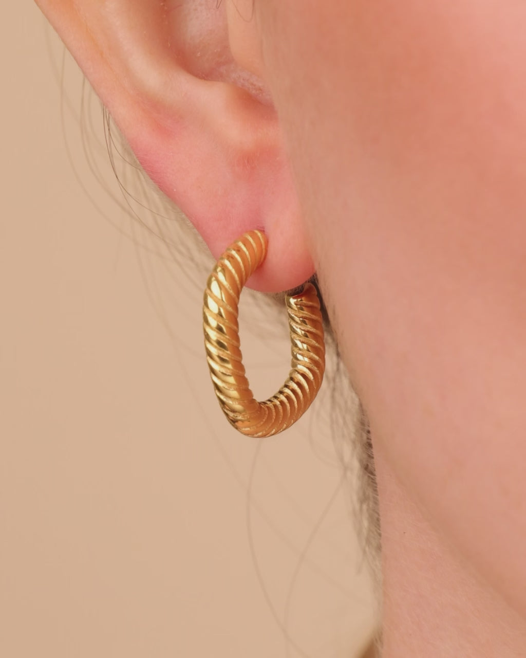 Textured and trend-proof. These ridged silver hoops deliver vintage energy with a contemporary edge. A staple pair for your everyday rotation—wear them solo or mix into a layered ear for that quiet statement.