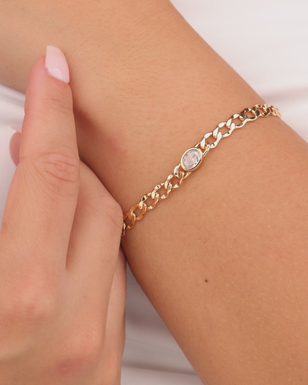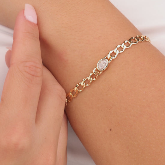 Features: Measures 8.5",1 8x6mm oval white CZ, 7x5 oval links, Lead and Nickel free, Lobster clasp