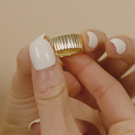 Experience luxury and sophistication with the Robyn Ribbed Ring. The band's elegant ridges offer a unique texture, while the ribbed design adds to its exclusivity. Elevate your style with this tasteful accessory, perfect for any outfit and occasion.