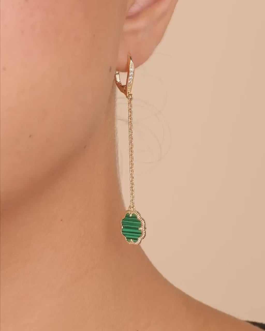 Materials: 14K gold or rhodiumĀ plated brass, cubic zirconia, genuine mother of pearl/genuine onyx/synthetic malachite