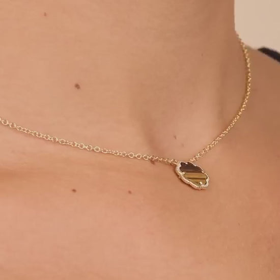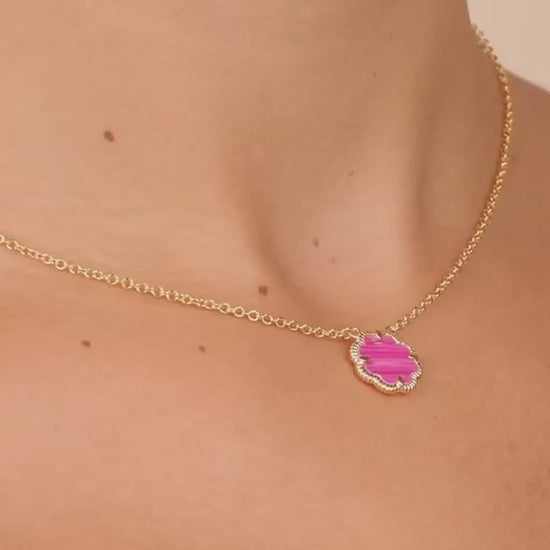 This sweet rose petal design is ideal for any floral fan! Show off your love of nature's beauty with this necklace that features a pendant in mother of pearl, onyx, or malachite. Adjustable for the perfect fit. Available in gold and silver tones.