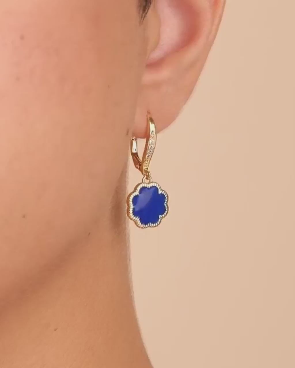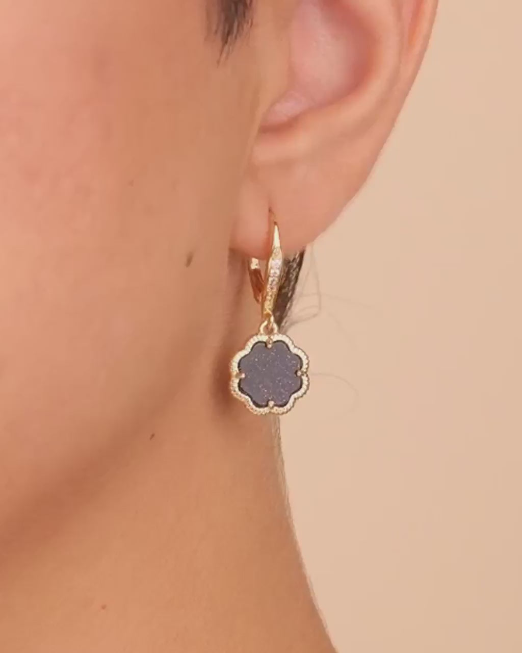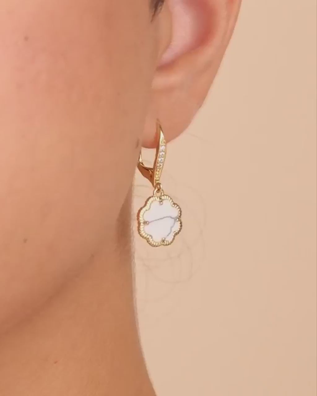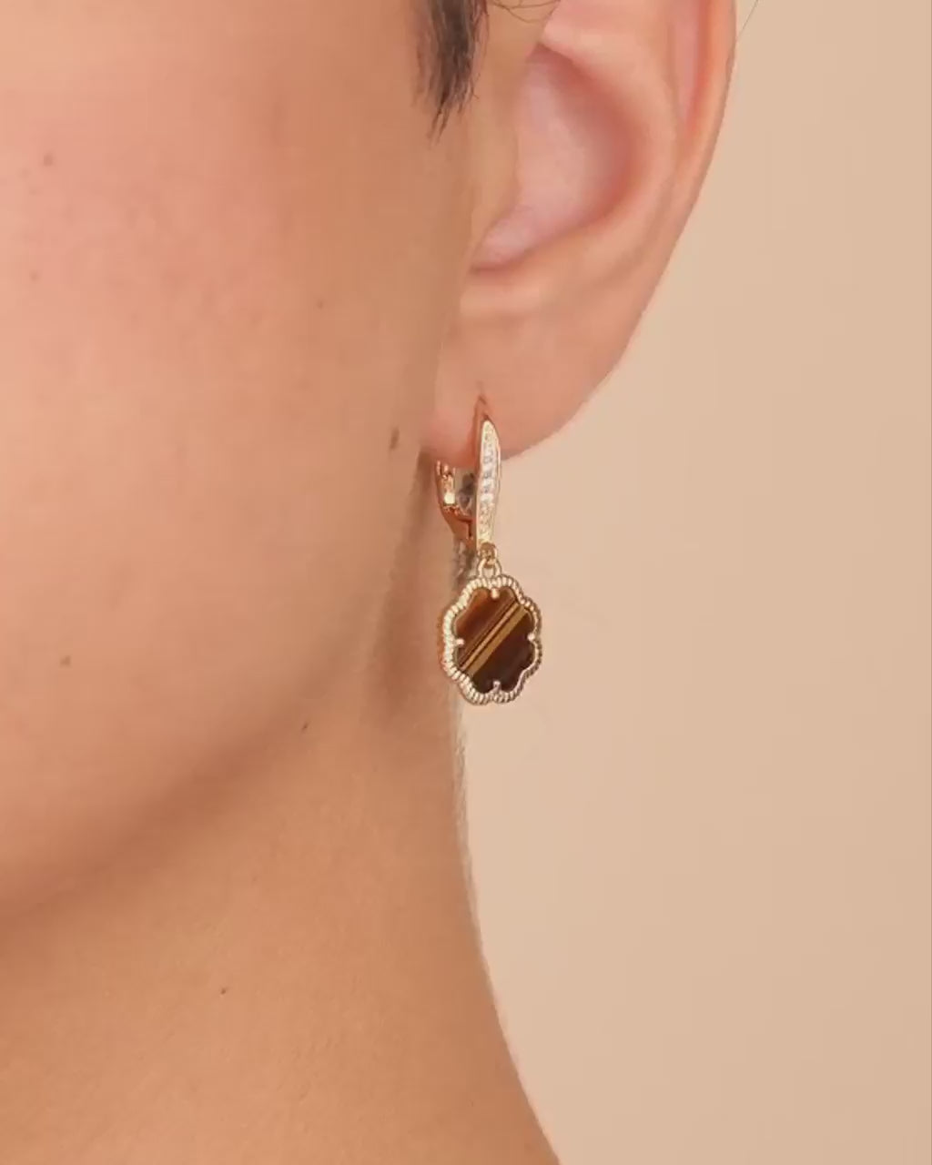 Materials: 14K gold or rhodium plated brass, cubic zirconia, genuine mother of pearl/genuine onyx/synthetic malachite/genuine tiger's eye/created stones