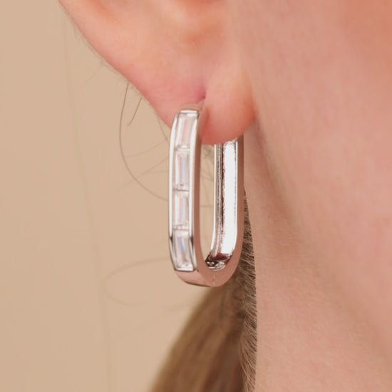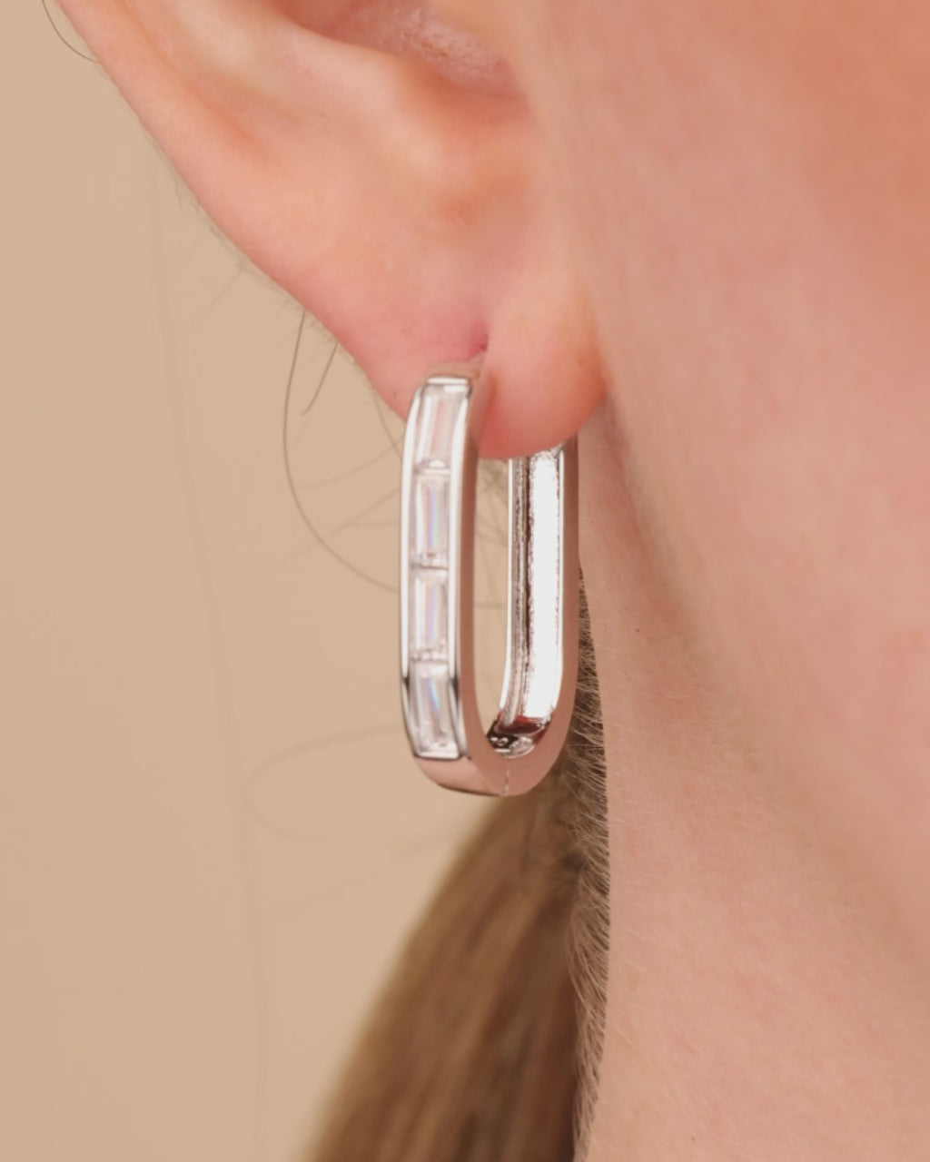 Classic hoops with a modern edge. These sleek micro hoops feature a row of emerald-cut CZs, delivering just the right amount of brilliance. The polished metal finish adds to their luxe appeal—perfect for stacking or making a statement on their own.