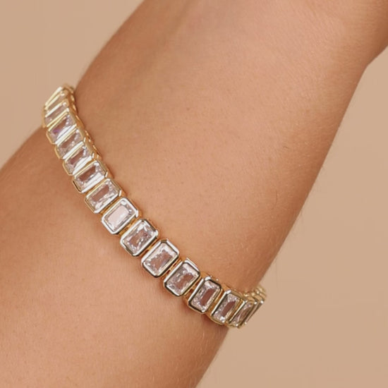 Shine like a star with Roxie! This bezel set, tennis bracelet is the perfect accessory for any occasion. Featuring sparkling Cubic Zirconia, Roxie will up your glamour game and have you twinkling like a diamond! Add a touch of luxe to your look and make a fashion statement! đź’Ž