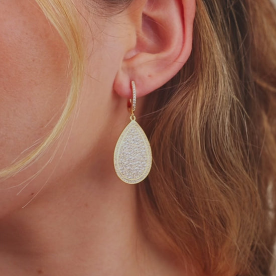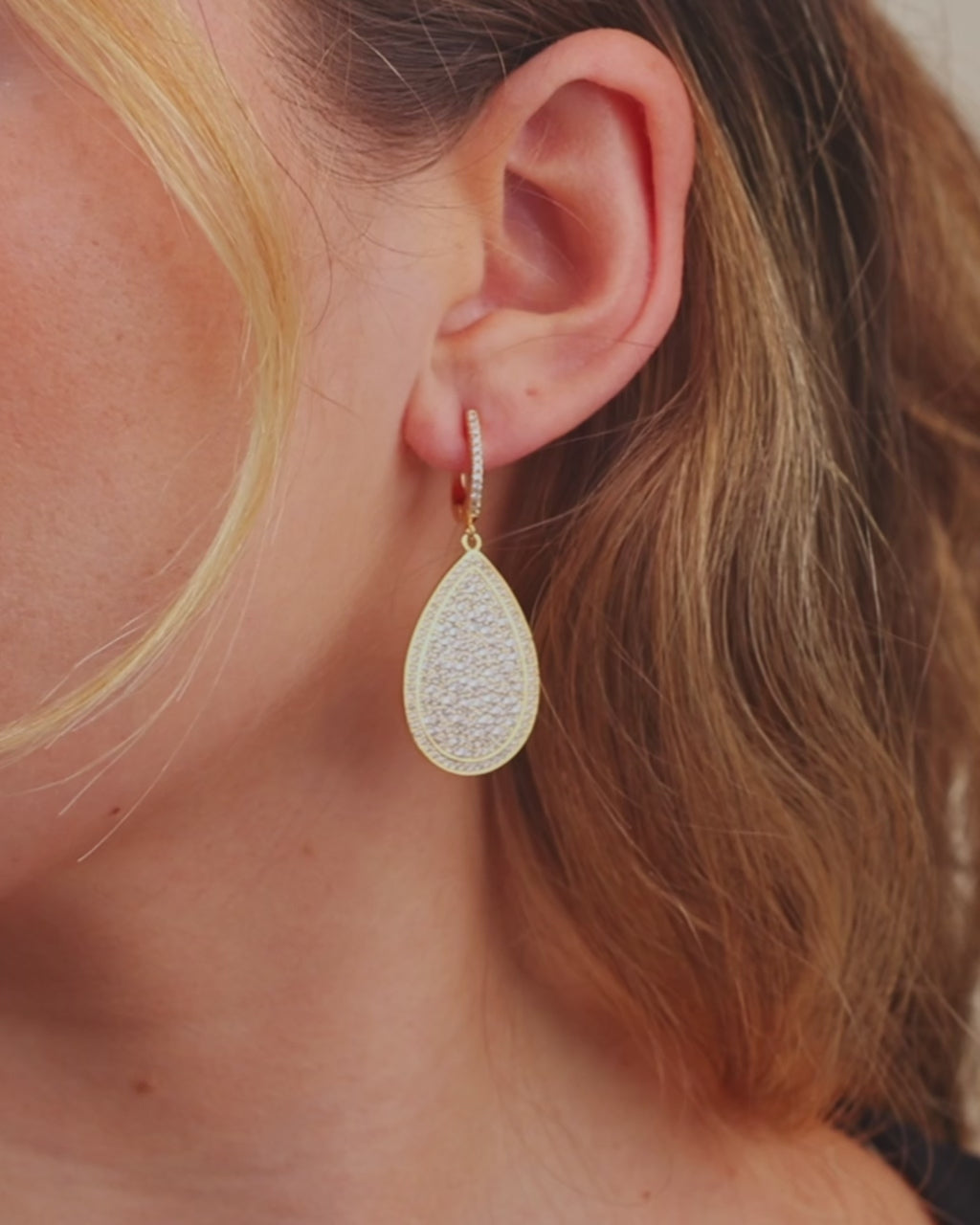 Major drop energy. Drenched in pavé and drama, these teardrop earrings make every move feel intentional. Sleek, sculptural, and built for the spotlight.