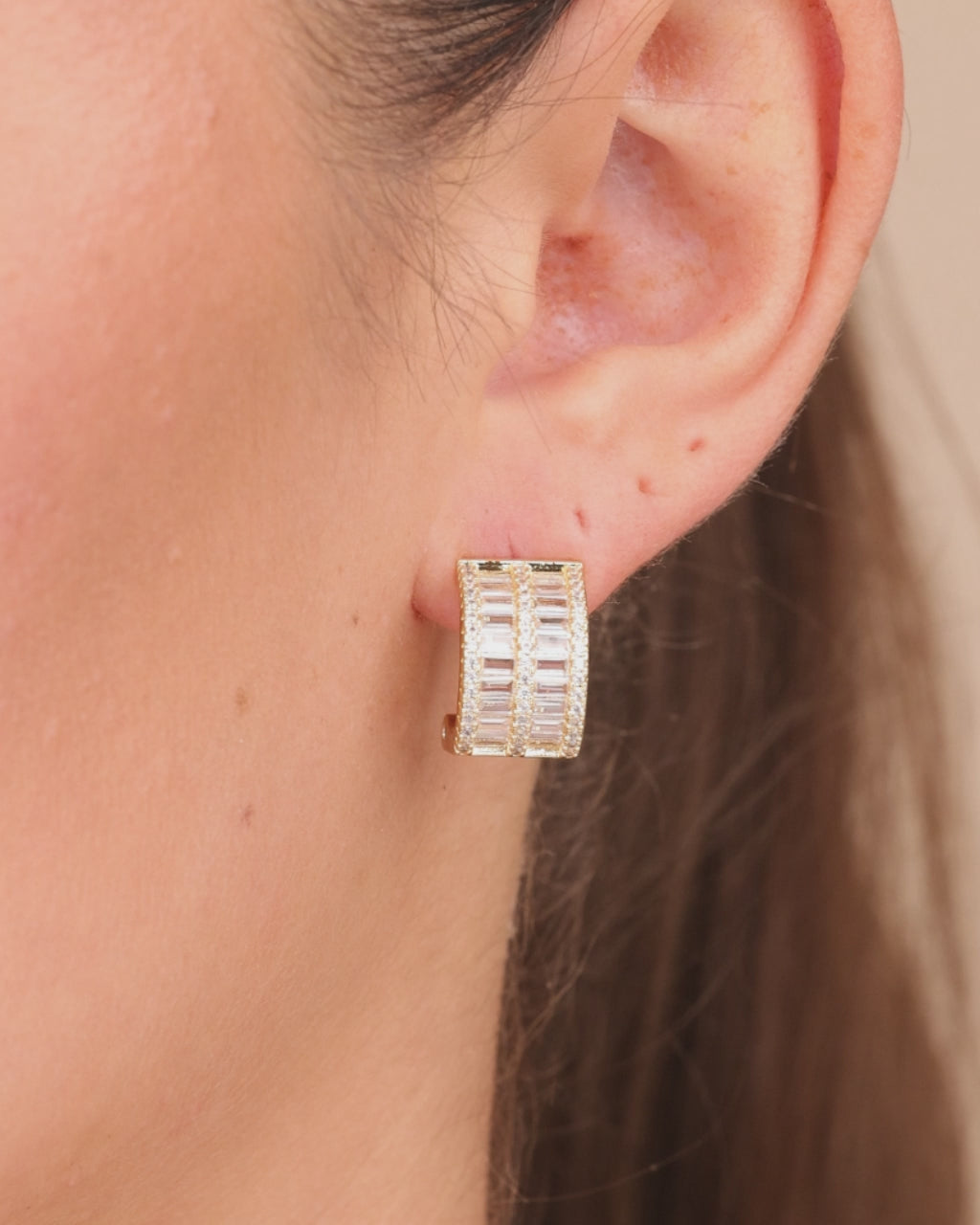 Materials: 14K gold or rhodium plated brass, cubic zirconia