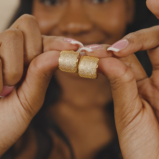 Experience luxurious elegance with our Simone CZ Stud Earrings. The glimmering cz studs are expertly set in a delicate huggie hoop design, creating a timeless and sophisticated look. Elevate any outfit with these earrings, perfect for any occasion.