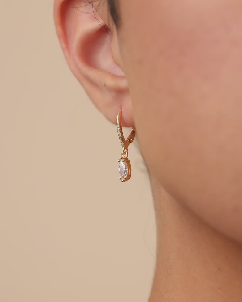 Set with marquise-cut Hearts & Arrows CZ, these sterling silver French clip earrings bring a refined, geometric drop. The French clip backing ensures a smooth, secure fit for all-day wear.