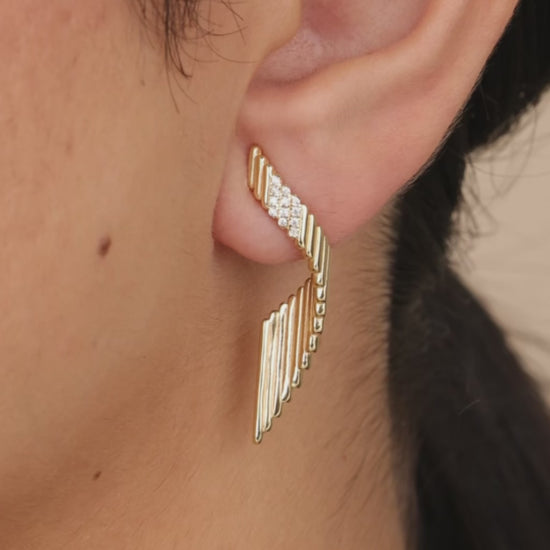 Features: 1.4" drop studs, 8mm wide, pave czs, post back, lead and nickel free