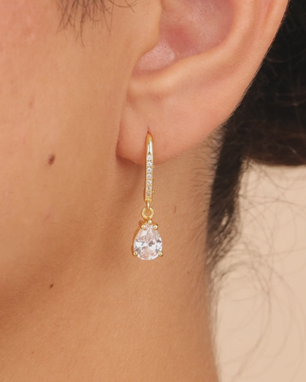 Set with pear-cut Hearts & Arrows CZ, these sterling silver French clip earrings bring a refined, geometric drop. The French clip backing ensures a smooth, secure fit for all-day wear.