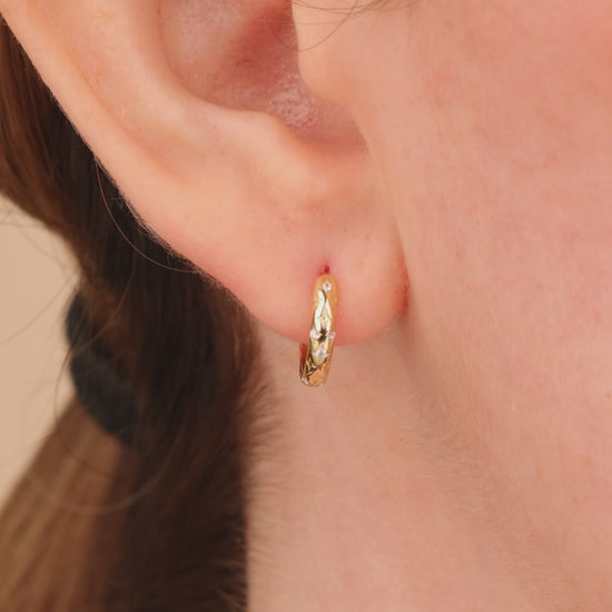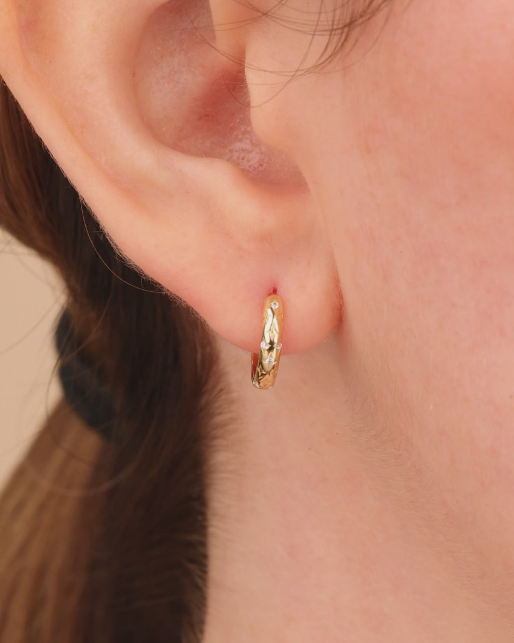 Star-studded and unapologetic. These celestial-inspired micro hoops feature diamond-cut CZs set in etched starbursts—made to shine solo or layered with your everyday stack.