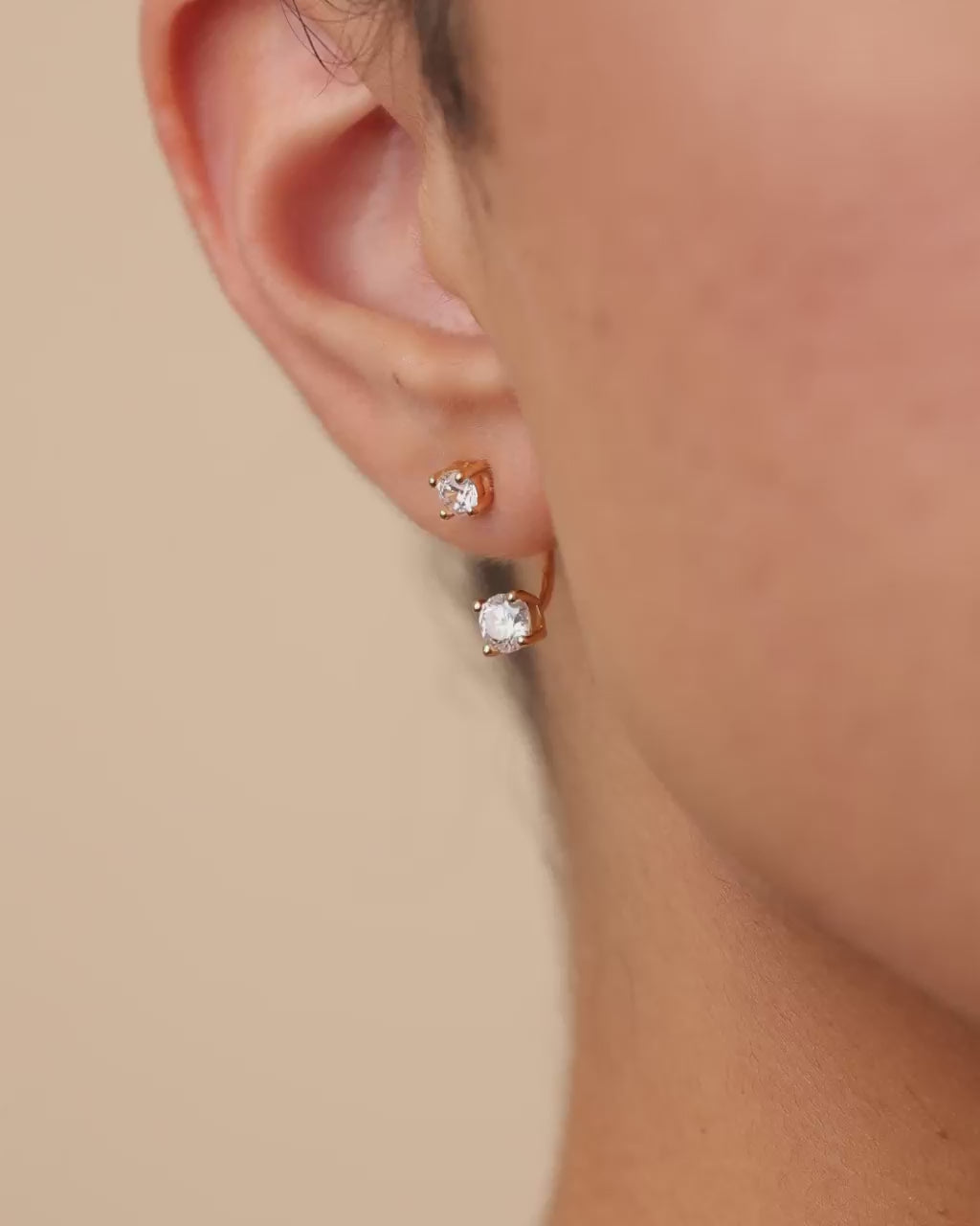 Upgrade your classics. These earring jackets are set with two round Hearts & Arrows CZs, designed to sit just beneath the lobe. A subtle but striking way to wear earrings.