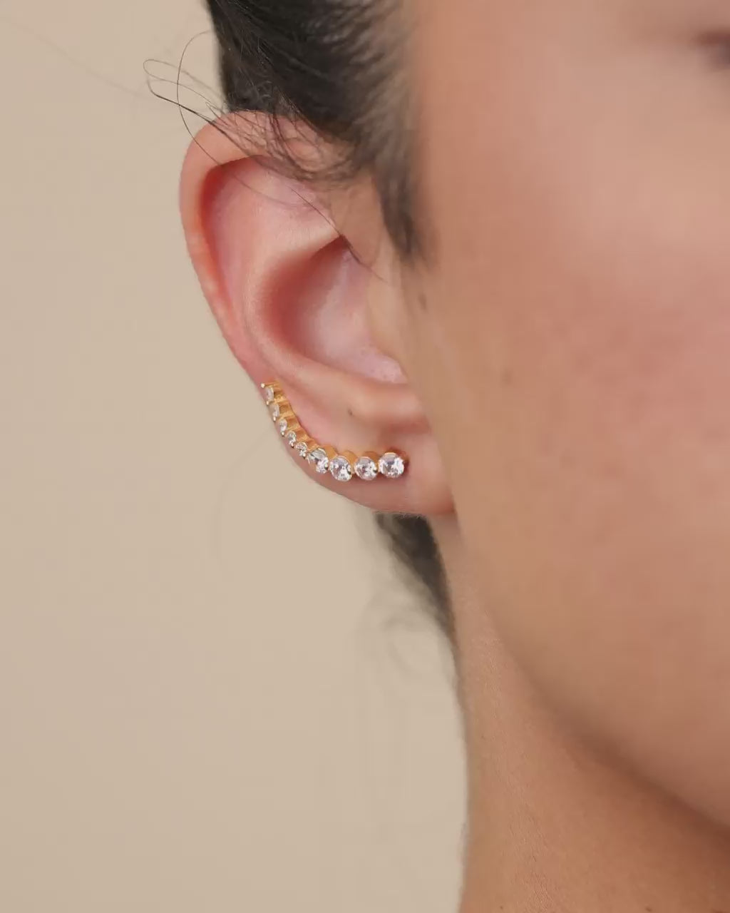 All about the shape. These crawlers feature round Hearts & Arrows CZs that gradually shift from big to small, giving the illusion of a full ear stack in a single piece.