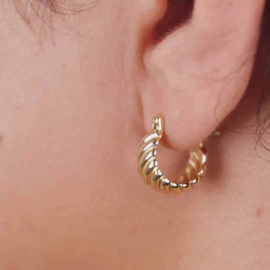 Love unique hoops? These textured earrings are a must-have for any jewelry collector! The friction latch will keep them secure so you can wear them to work, to a party, and more. Available in gold and silver tones.