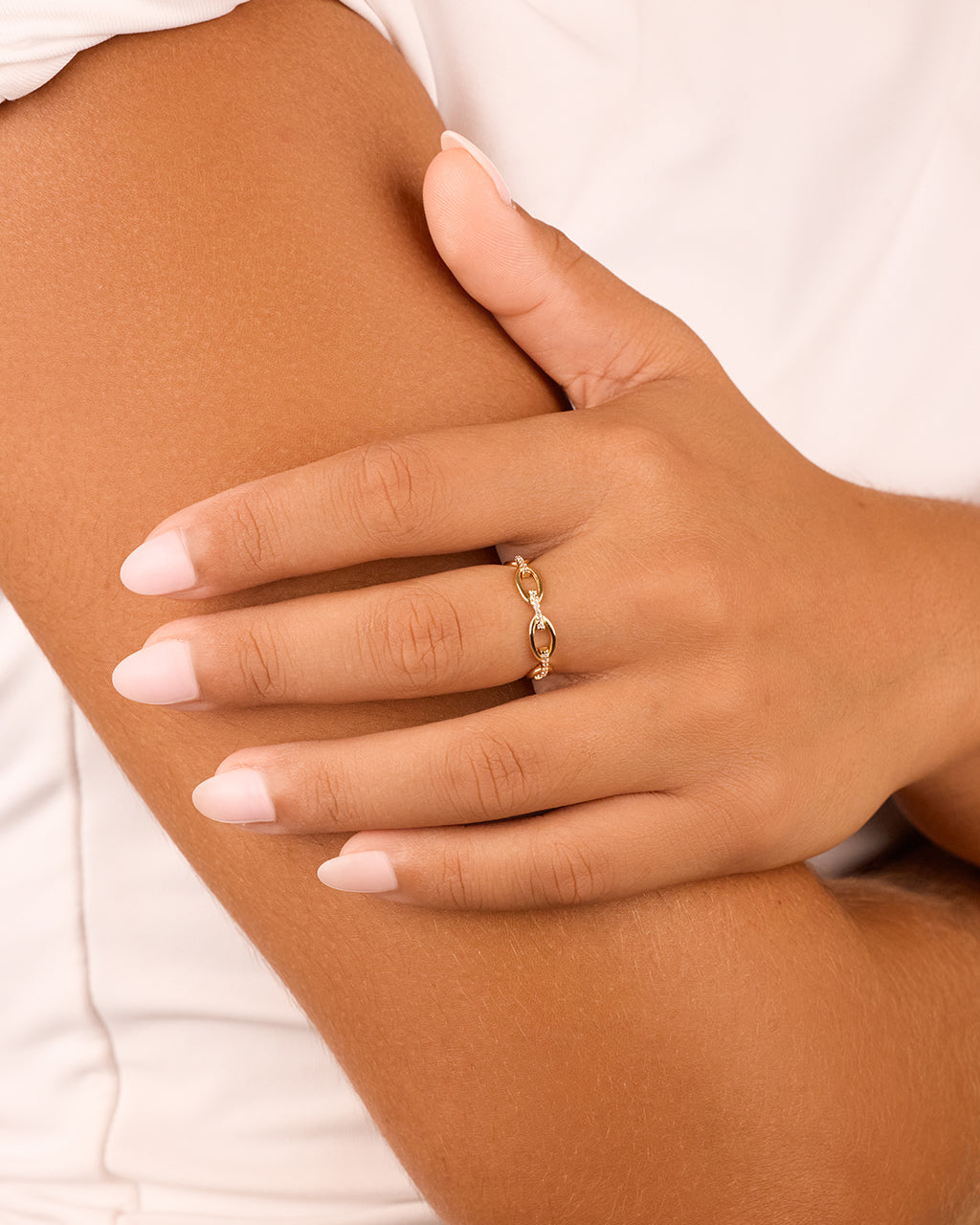 If you love adding a touch of glam to your look, this sterling silver open chain link ring is a must-have! Add this ring, which features bold links and sparkling stones, to any look. Available in gold and silver tones.