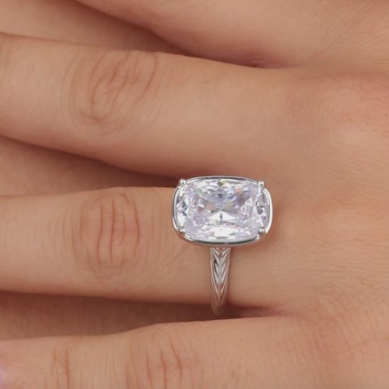 Features: 10mm x 14mm elongated cut clear CZ, 1.6mm-3.1mm ring band, Lead & Nickel free