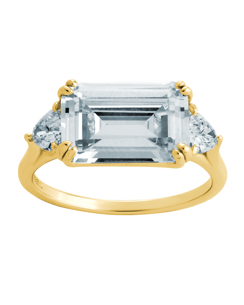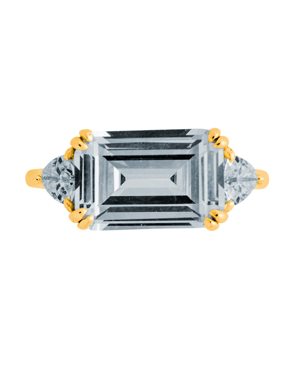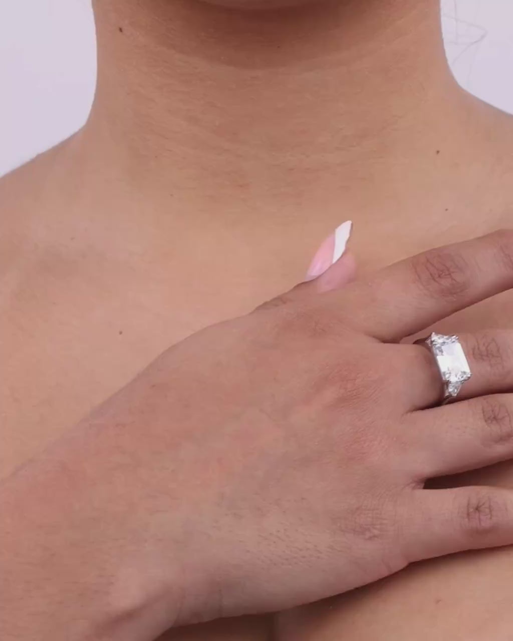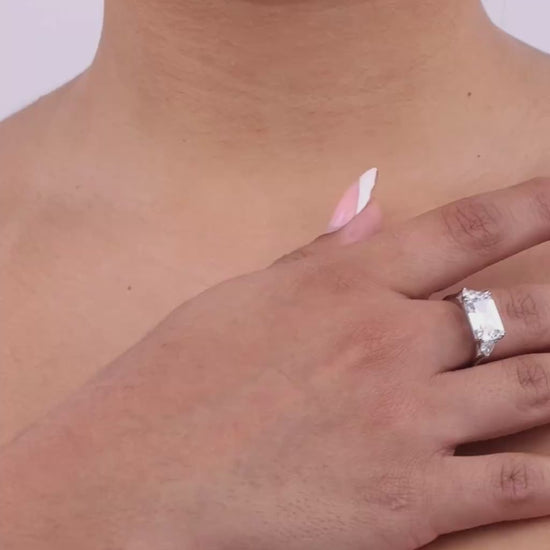Features: 1.7 mm Band, 4.5 mm x 4.5 mm Trillion Cut Clear CZ, 8 mm x 12 mm Emerald Clear CZ, Lead & Nickel Free