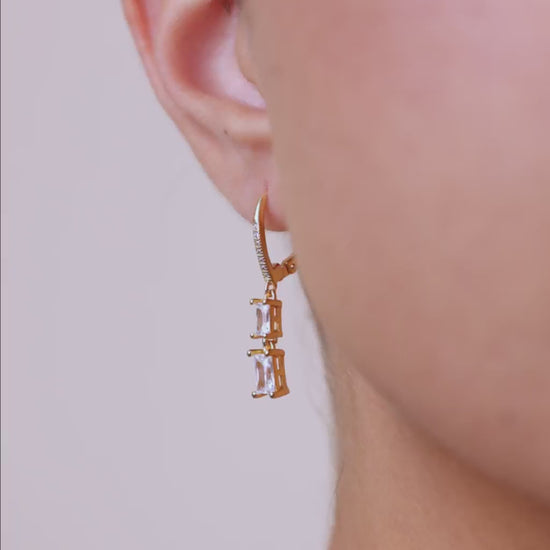 Double the detail. These sterling silver French clip earrings feature two emerald-cut Hearts & Arrows CZs, stacked for a clean, linear drop. Finished with a secure clip closure so they stay put all day.