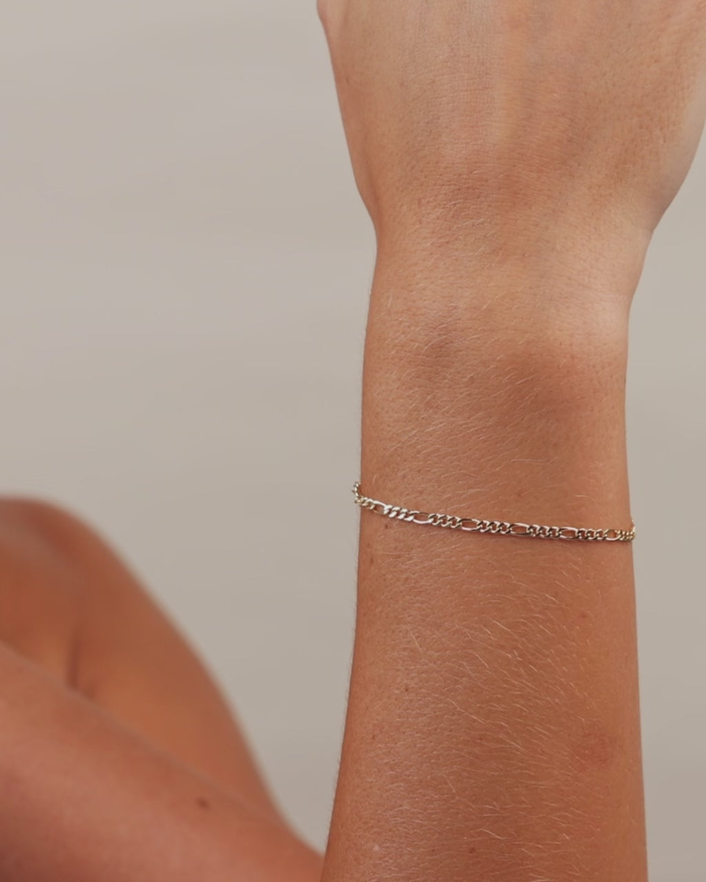 A sterling silver Figaro bracelet that’s equal parts classic and cool. Lightweight but built to last, it’s the perfect everyday piece—whether you wear it solo or stacked.