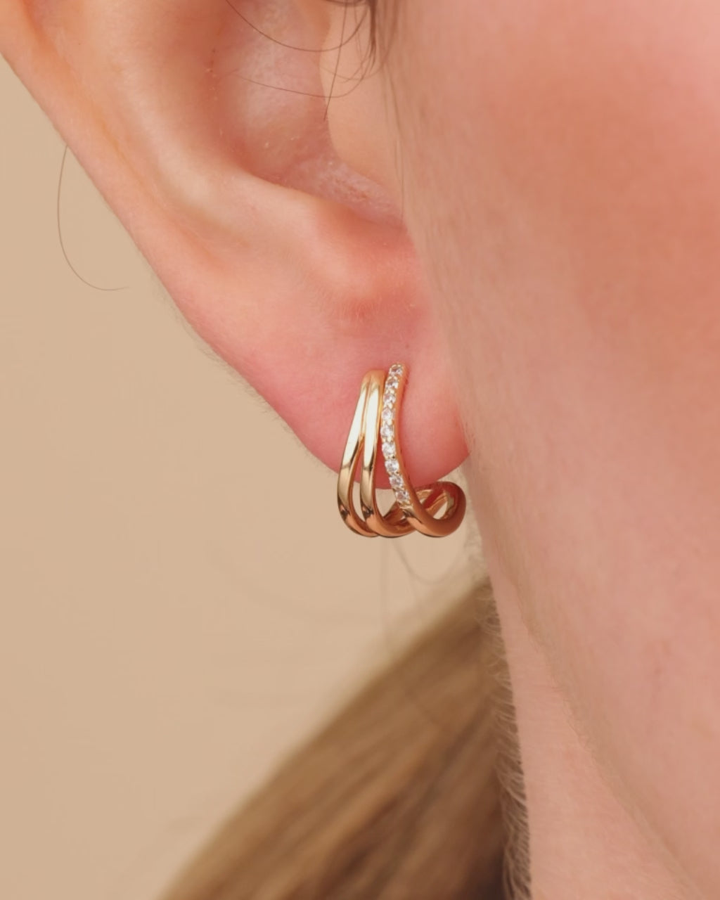 Unapologetically bold. These sculptural claw-inspired studs wrap the lobe with twin curves—one sleek, one CZ-lined—for a striking, ear-cuff effect without the fuss.