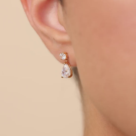 Features: 4mm round CZ - 8x6mm pear CZ, 0.5” drop, Post backing, Lead & nickel free