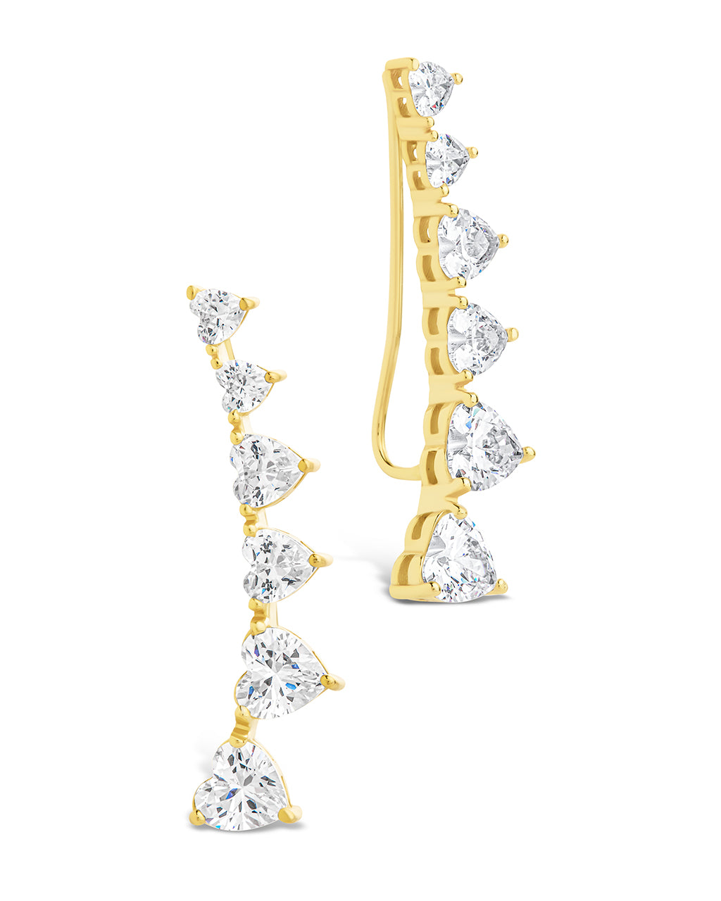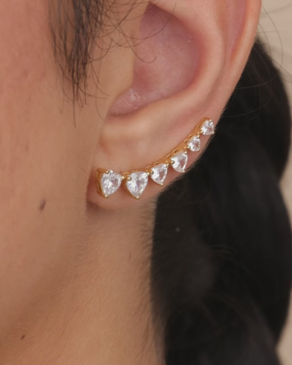 Elevate your style with our Sterling Silver Jillian CZ Heart Crawler Studs. These stunning crawlers feature a row of CZ hearts, gradually increasing in size for a subtle yet striking effect. Make a statement with these luxurious and exclusive earrings